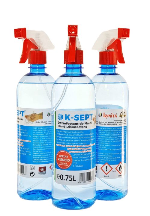 Вируциден дезинфектант за ръце 750 ml, 75% алкохол, със спрей помпа, одобрен вируциден, бактерициден и фунгициден