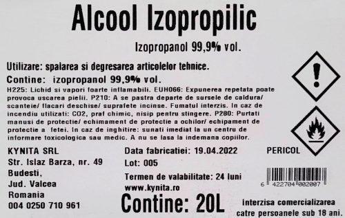 Изопропанол (изопропилов алкохол), 99%чистота, 20 литра