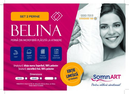 Комплект 2 възглавници 50×70 Somnart Belina, микрофибър, могат да се перат в пералня, вакуумирани, бели