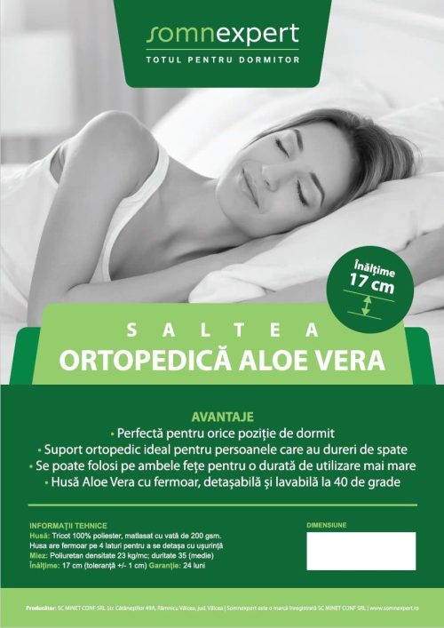 Ортопедичен матрак Somnexpert 140x200x17см полиуретанова пяна, сваляща се и переща се калъфка от памук Алое Вера, навита, средна твърдост