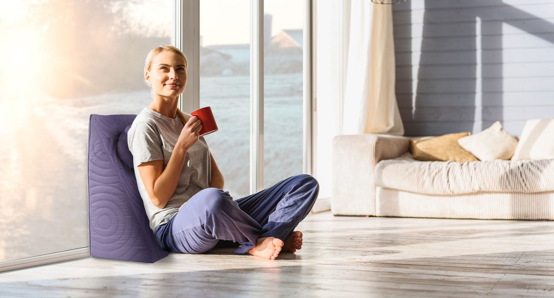 RELACK TV възглавница 60x68x30cm, ортопедичен за четене, антирефлукс, с сменяеми, удобни и устойчивост на множество измивания на 40 градуса, лилаво